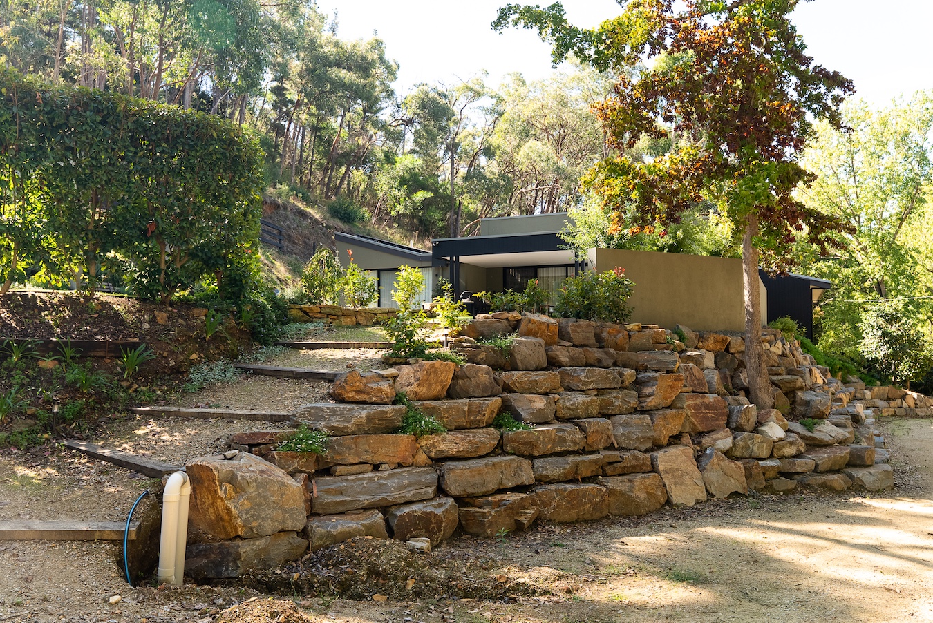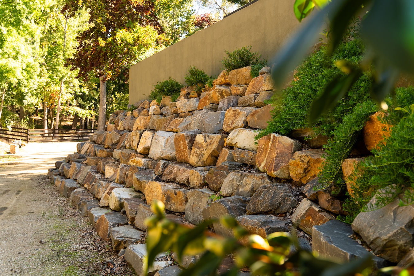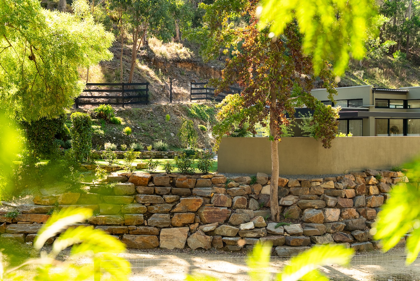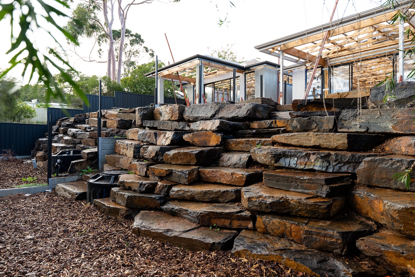 At Fresh Retaining Walls, we combine the right equipment with highly experienced operators to ensure every bluestone piece is placed with precision and care. This allows us to construct retaining walls that are not only structurally strong, but also visually refined. Each stone is carefully positioned to create a natural, balanced look that complements the surrounding landscape. The result is a bluestone retaining wall that blends seamlessly into your garden, adding texture, character, and a timeless finish while still feeling organic and true to its environment.